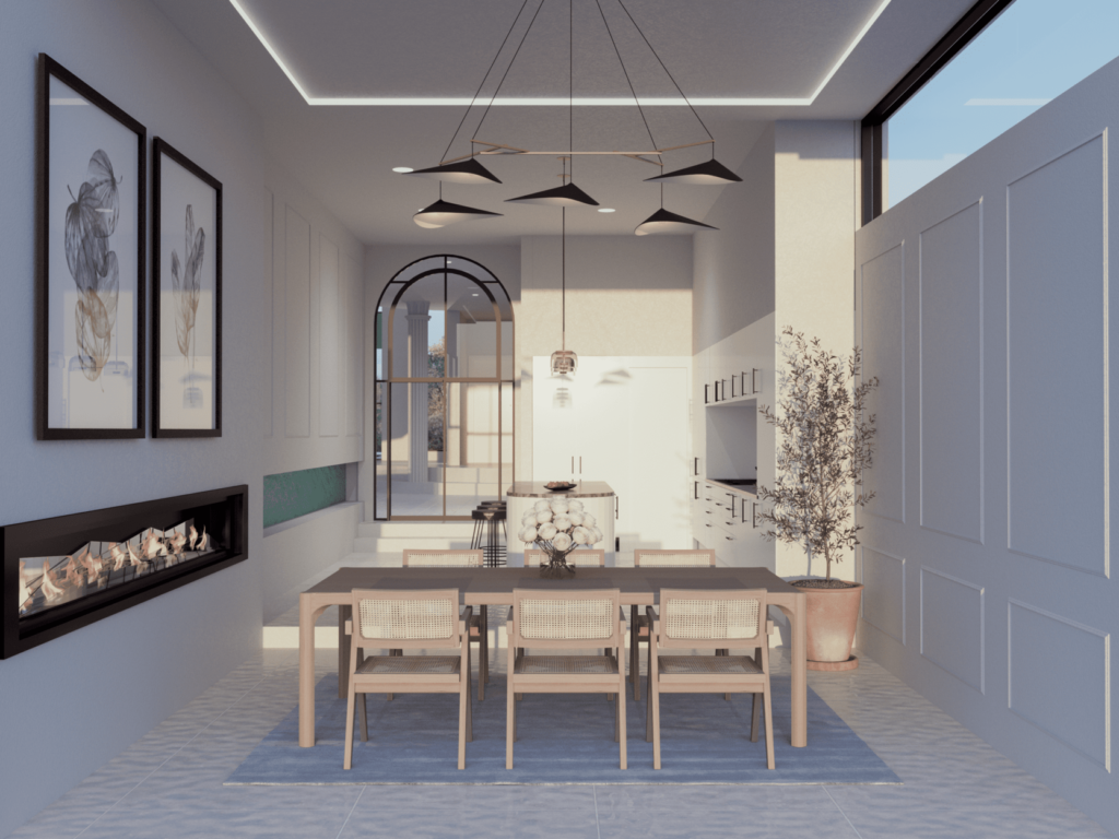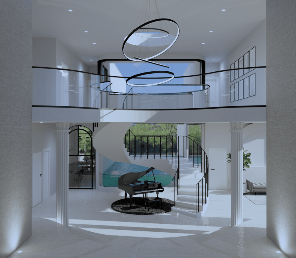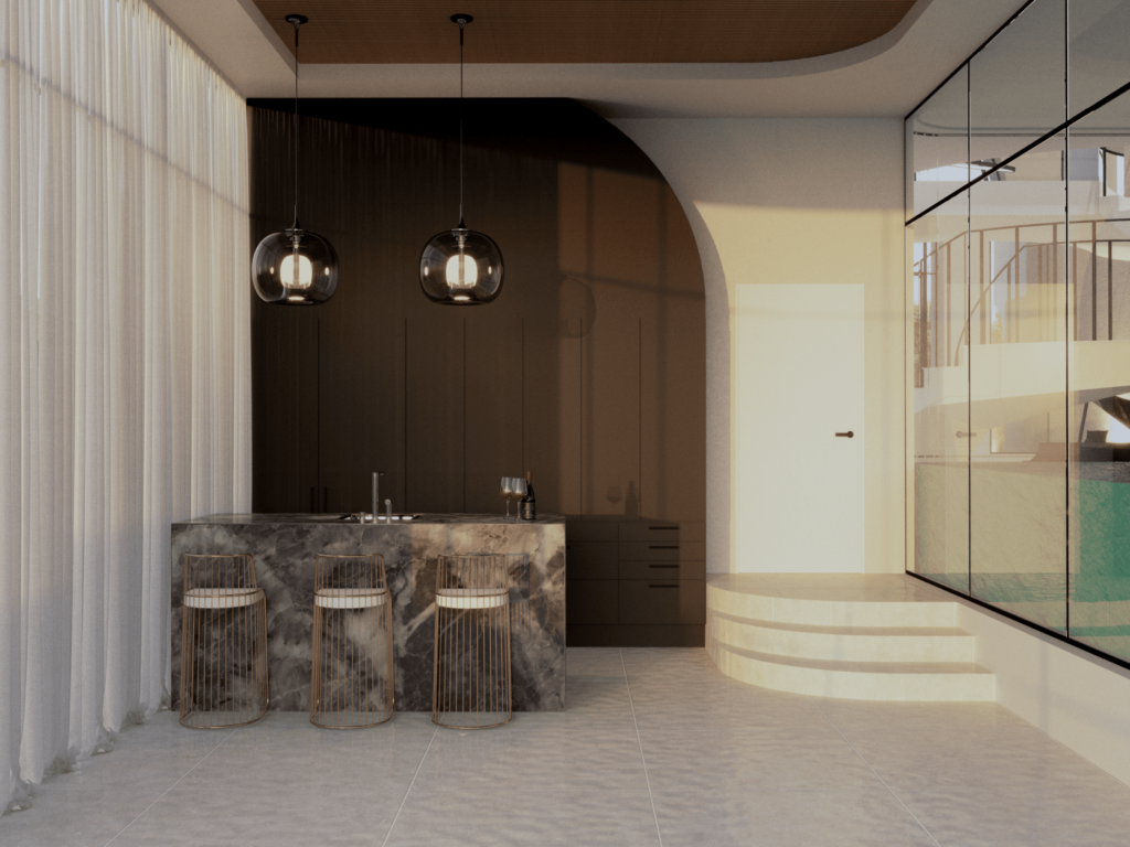 The divisive planning draws inspiration from contemporary middle eastern architecture which divides the space up from the main entry foyer.